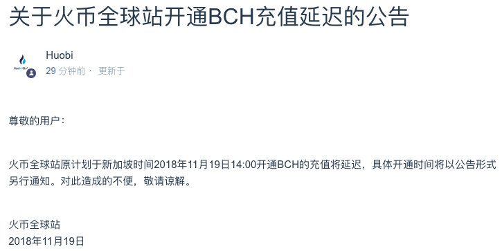 再一看,火币放开BCH充值的计划也搁置了。