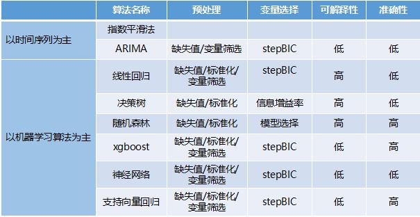 依照核心流程,预测系统可分为以时间序列为主、和以机器学习算法为主两种。