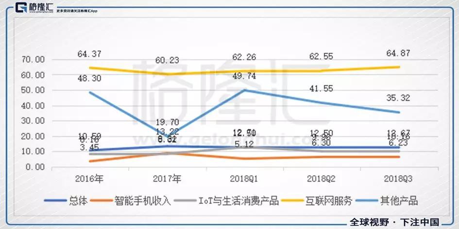 从实际情况来看,IOT与生活消费产品整体毛利率高于手机,平均在10%左右;同时增速很快,但是增速相对于Q2有点下滑。
