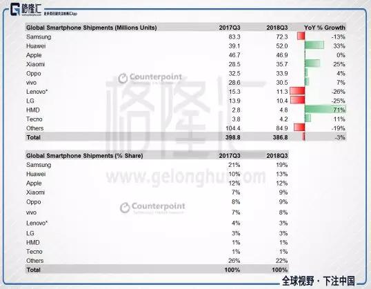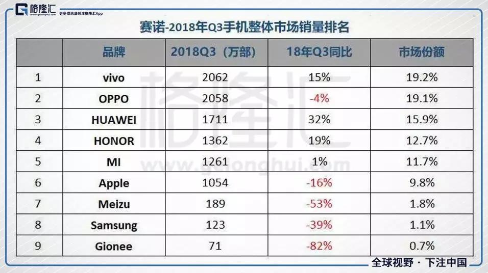 而国内市场销量,小米就表现的一般了。根据赛诺的数据,其实小米二季度在中国市场只取得了2%的同比增幅,而到了Q3,情况依旧严峻:同比只有 1% 的增长。