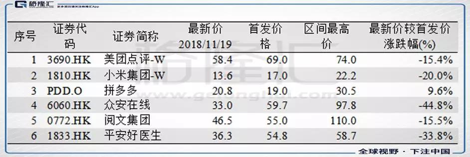 小米今年上市,表现不是特别好。但实际上这一波新经济公司的表现都不算太好。美团相比发行价也已经下跌15%,阅文集团跌了16%,众安在线跌了45%。小米也差不了多少,跌了20%。而如果从期间最高点算起,跌的更惨。