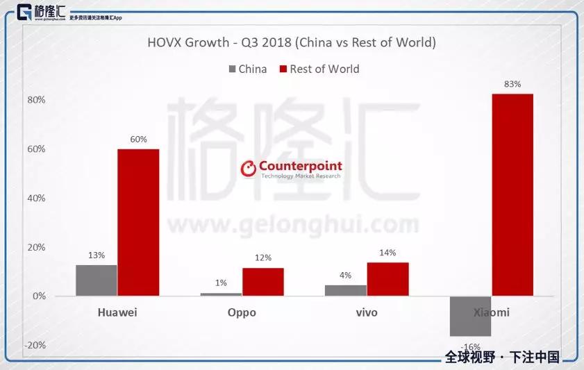 同样Counterpoint 的数据也显示,小米市占率下滑1pct,手机业务的增量基本上都是海外市场贡献的。