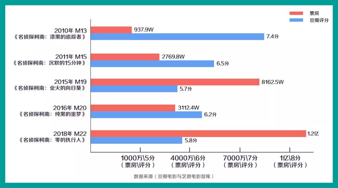 有趣的是,《名侦探柯南》系列的口碑与票房的变动刚好呈相反趋势。