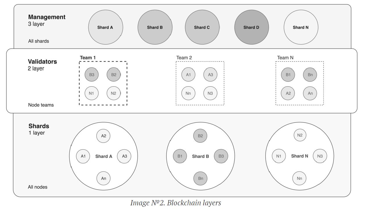 区块链开发平台The Power采用分层的系统架构:管理层负责节点的地址注册,校验层借由MTP(Merkle Tree Proof)算法验证跨片交易,分片层负责交易和智能合约。