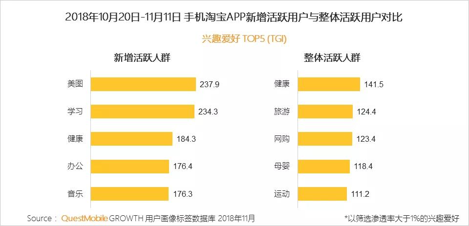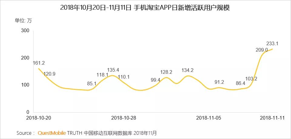 1、手机淘宝在今年“双11”成功引流,活动期间日新增活跃用户在百万量级
