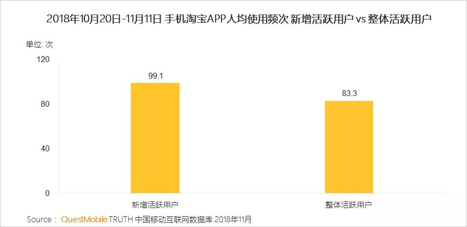 3、“双11”期间手淘的新增用户对于手淘的使用频率近百次,新用户的购物热情不容小觑