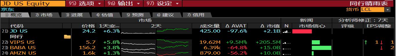 据Bloomberg的“同行晴雨表”,京东的市场信心出现巨大的负面反应,远低于阿里巴巴等同行。