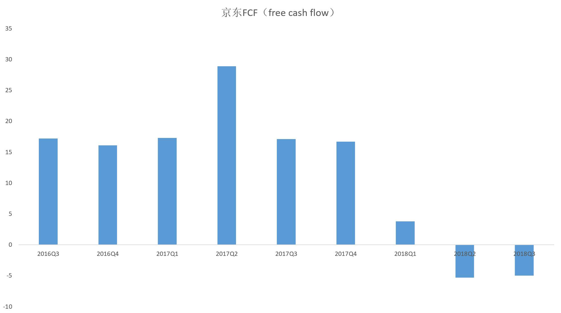由于资本支出高,京东Q3的FCF(自由现金流)为负,包括了36亿元人民币的土地使用权、仓库建设费用,和50亿元人民币的IT基础设施投入。