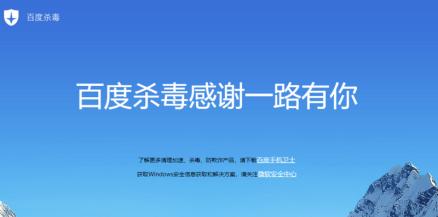 百度杀毒软件官网首页显示“百度杀毒感谢一路有你”字样,并显示“了解更多清理加速、杀毒、防欺诈产品,请下载百度手机卫士”及“获取Windows安全信息获取和解决方案,请关注微软安全中心”等文字,至此,诞生于2013年4月的百度杀毒软件已不再提供介绍和下载。