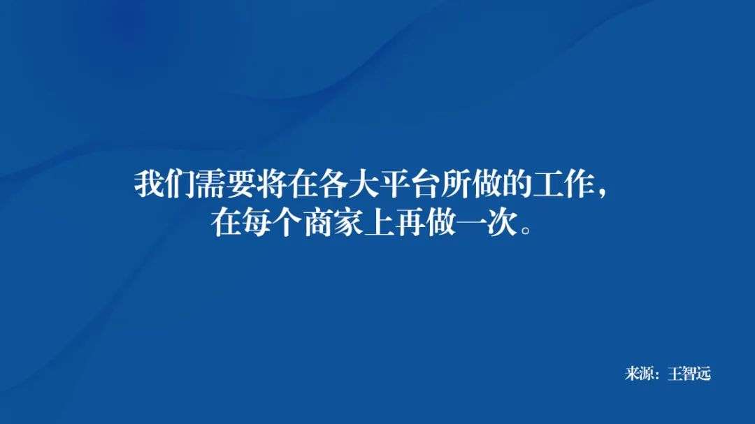 我认为,它是基于平台互联网去中心化的过程,我们需要将在各大平台所做的工作,在每个商家上再做一次。