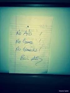在2014年2月被Facebook收购后,WhatsApp创始人也自豪地展示了“没有广告,没有游戏,没有噱头”的纸条,并表达了他们对广告商业模式的蔑视,和对用户隐私的尊重。