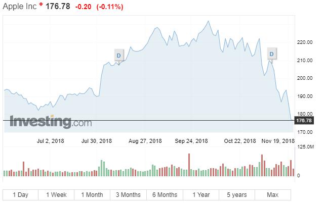 近来美股持续调整,一直在这轮美股牛市中扮演领头羊角色的苹果股价也几经震荡,最终于本周一正式跌入技术性熊市,股价现位于176美元左右。