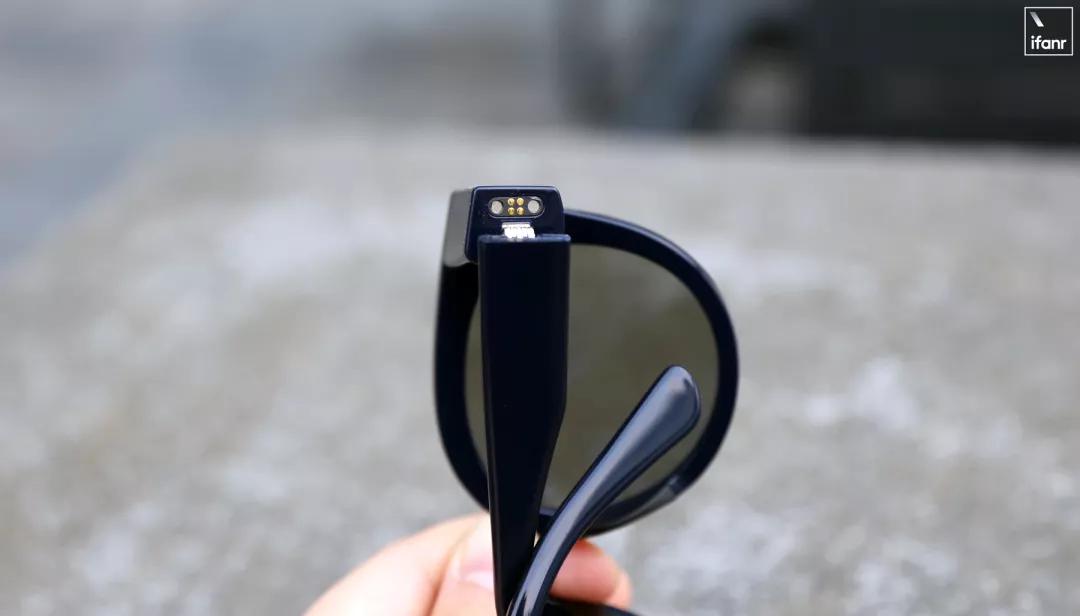 W2 的充电口在右边的镜腿上,折叠镜腿后,使用专用的磁吸充电线进行充电。一次充满需要 2 个小时,满电后录像、拍照 1 个多小时是没有问题的。