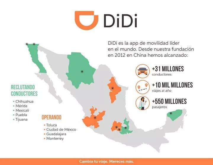 和墨腾的预测有所不同的是,滴滴采取了更为谨慎的策略:4月份时,滴滴先进入墨西哥州首府托卢卡,随后又进入第三大城市蒙特雷和第二大城市瓜达拉哈拉。
