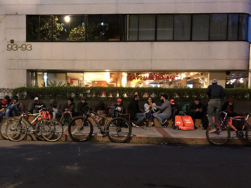 Rappi 的外卖小哥们正在等候订单 CHRIS PAPAROCKI摄