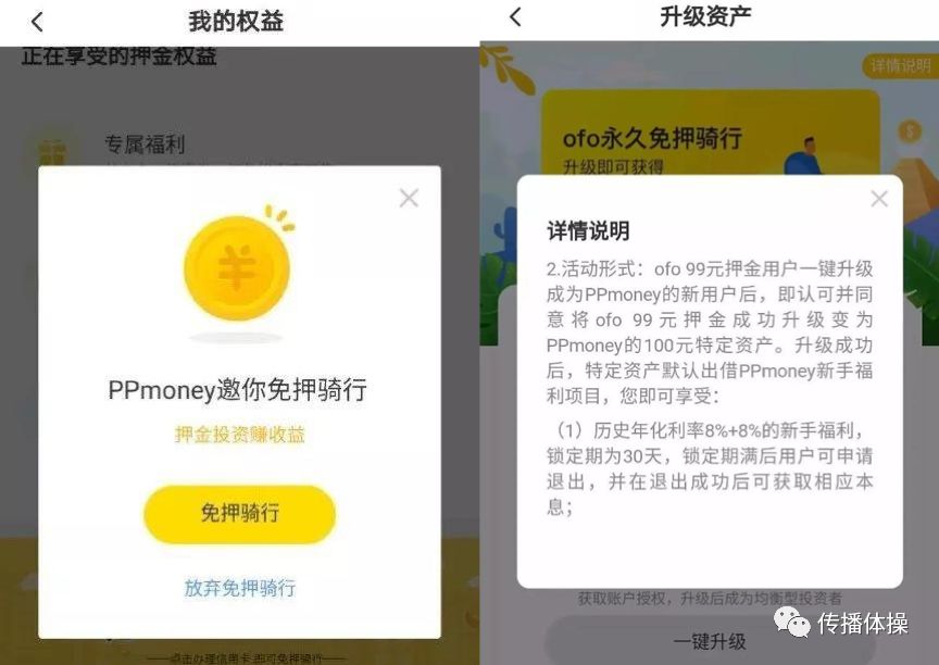11月23日,ofo又与PPmoney网贷合作免押金骑行,被网友指为变相押金转现金贷。