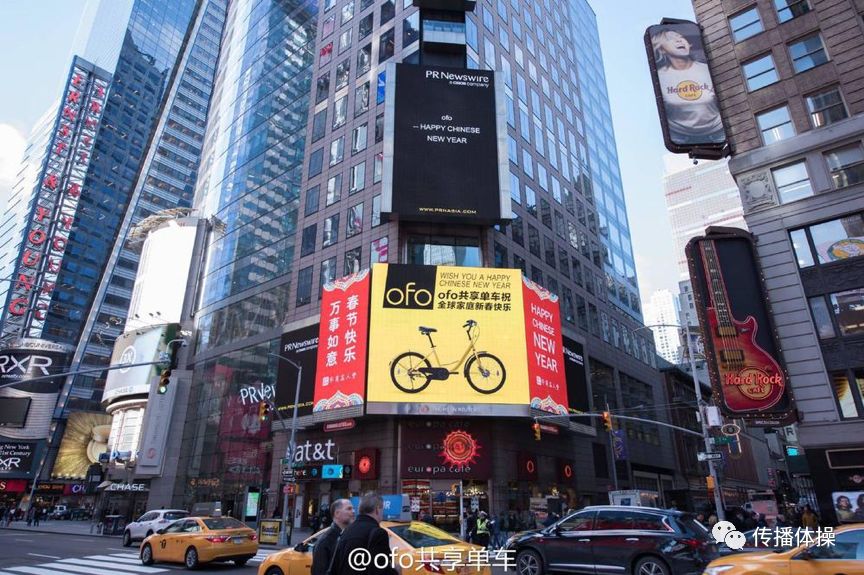 2017年1月新年,ofo高调亮相纽约时代广场向世界人民拜年,从此开启了ofo疯狂的一年。