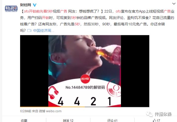 在逐渐退出海外市场的背景下,2018年8月,ofo上线了极具争议的开锁视频广告,用户开锁前需观看5秒钟视频广告,此举严重损害用户体验而备受网友吐槽。同时,ofo还先后上线了新闻信息流、小游戏等商业化项目。