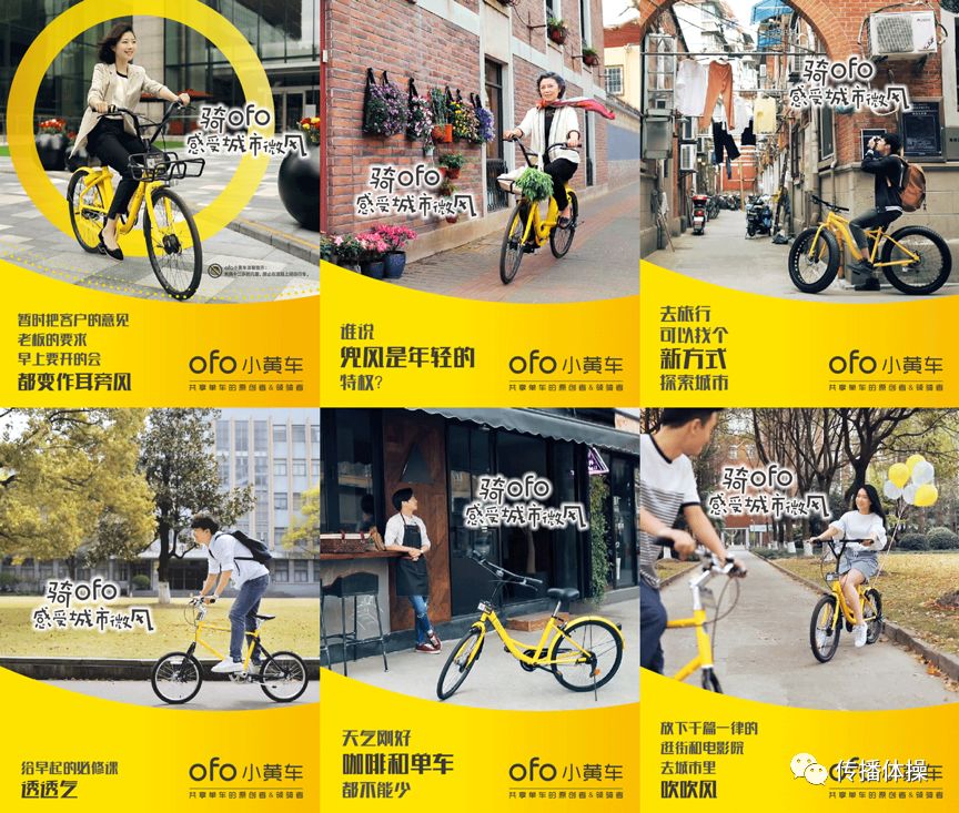 2017年4月,ofo发布了颇受好评的品牌广告片《城市微风》,slogan为“骑ofo,感受城市微风”,这也被认为是ofo的第一支品牌广告片,赢得不少口碑。