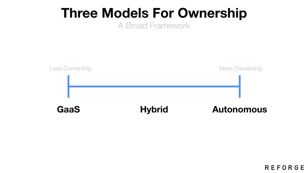 上图:你还得决定所有权模式。有两个极端:增长即服务(GaaS)以及自动化。以及介乎其间的一切。