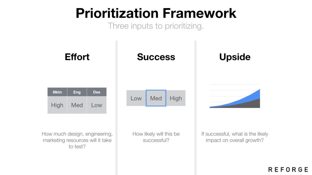 一般而言,投入是最容易理解的。如果你定义好了项目,你的团队就能够像其他任何东西一样针对它来执行。我一般建议增长团队早期要向低投入的项目倾斜。