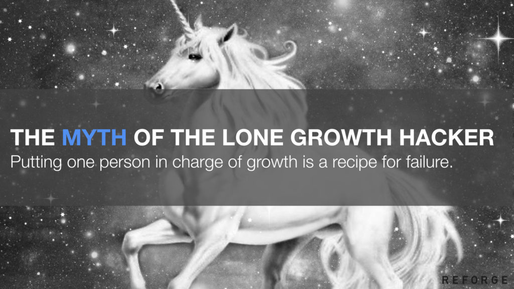 上图:在增长技能集的早期阶段是没有团队的。会有一些个人和初创企业创始人把必要的想法、工作流和策略组合到一起。其中一些家伙会以玩笑的口吻自称为“增长黑客”。