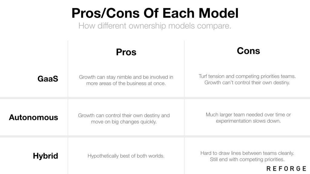 另一方面,完全的所有权模式意味着增长团队可以拥有新的用户漏斗、通知、广告技术、A/B测试平台、支付流,以及许多其他数字胜过直觉的关键领域。这样可以管用,但然后团队需要恰当地配置人员。