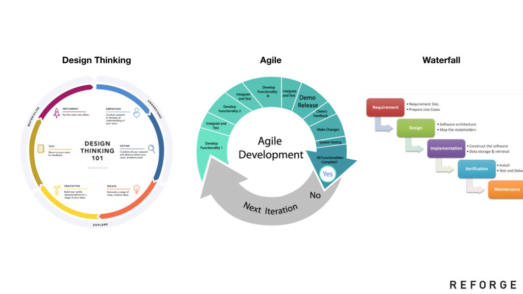 我们把“设计思维”与“敏捷工程”视为不同的组织结构、工作流、哲学与技能集体系。这些是公司内部工作机制的关键。