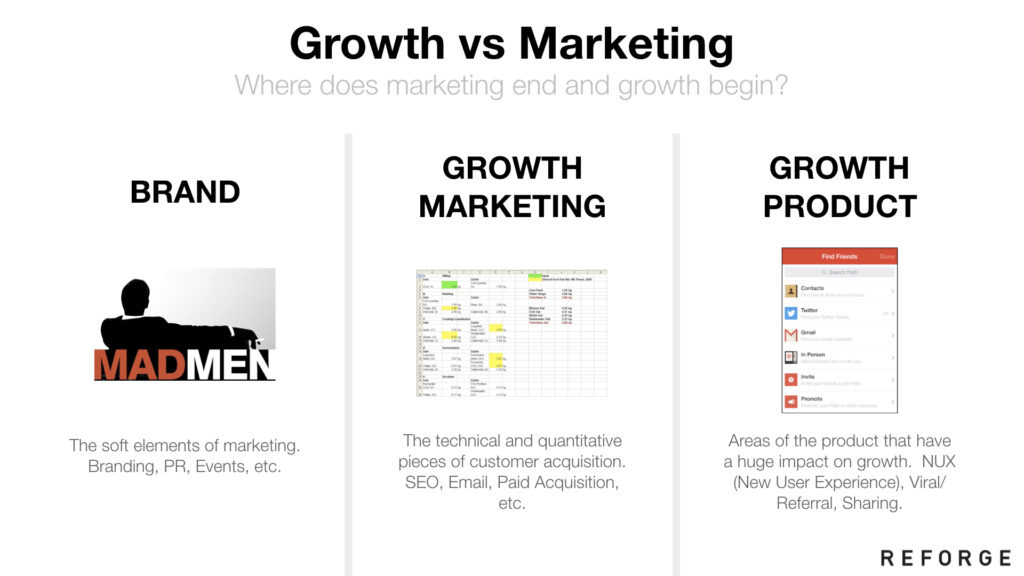 上图:我经常会被问到这个问题。难道增长和营销不是一回事儿吗?难道增长跟产品不是一回事儿吗?难道让大家都负责增长不行吗?