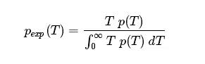 当乘客随机到达公交车站时,他们所经历的时间间隔的概率将受到p(T)的影响,但也受到T本身的影响:间隔时间越长,乘客遇到这一间隔的概率就越大。