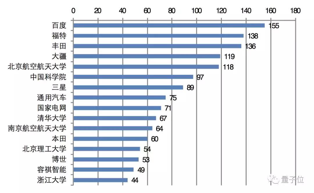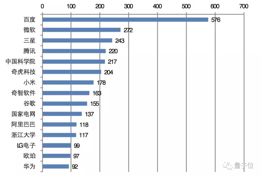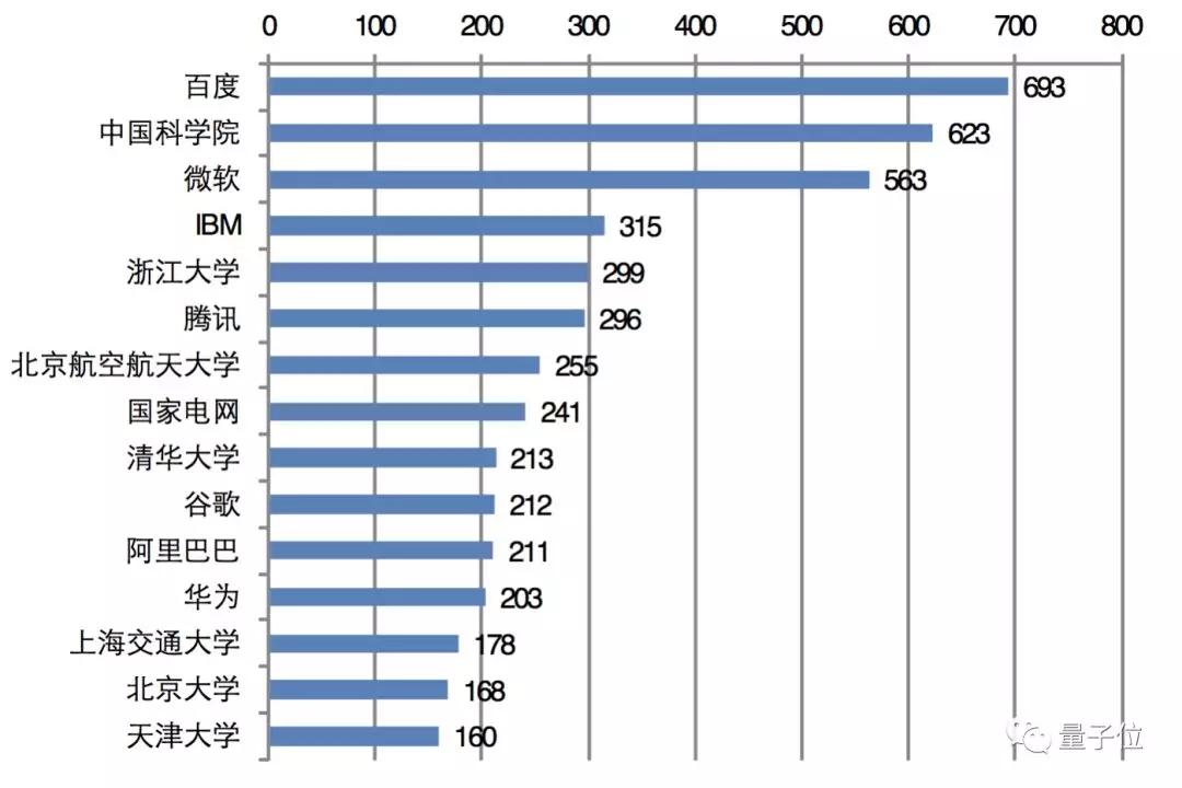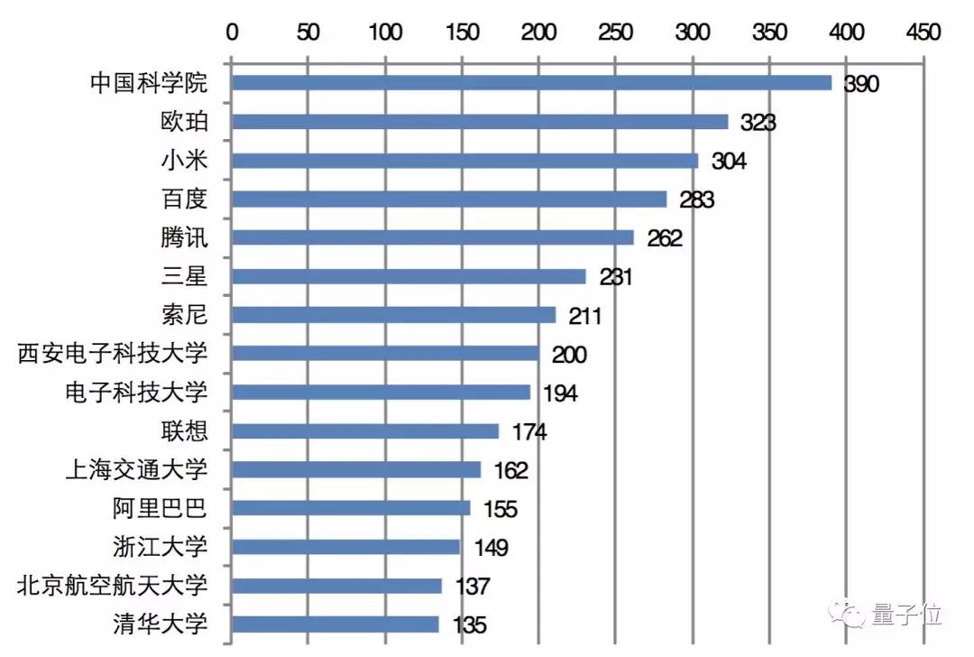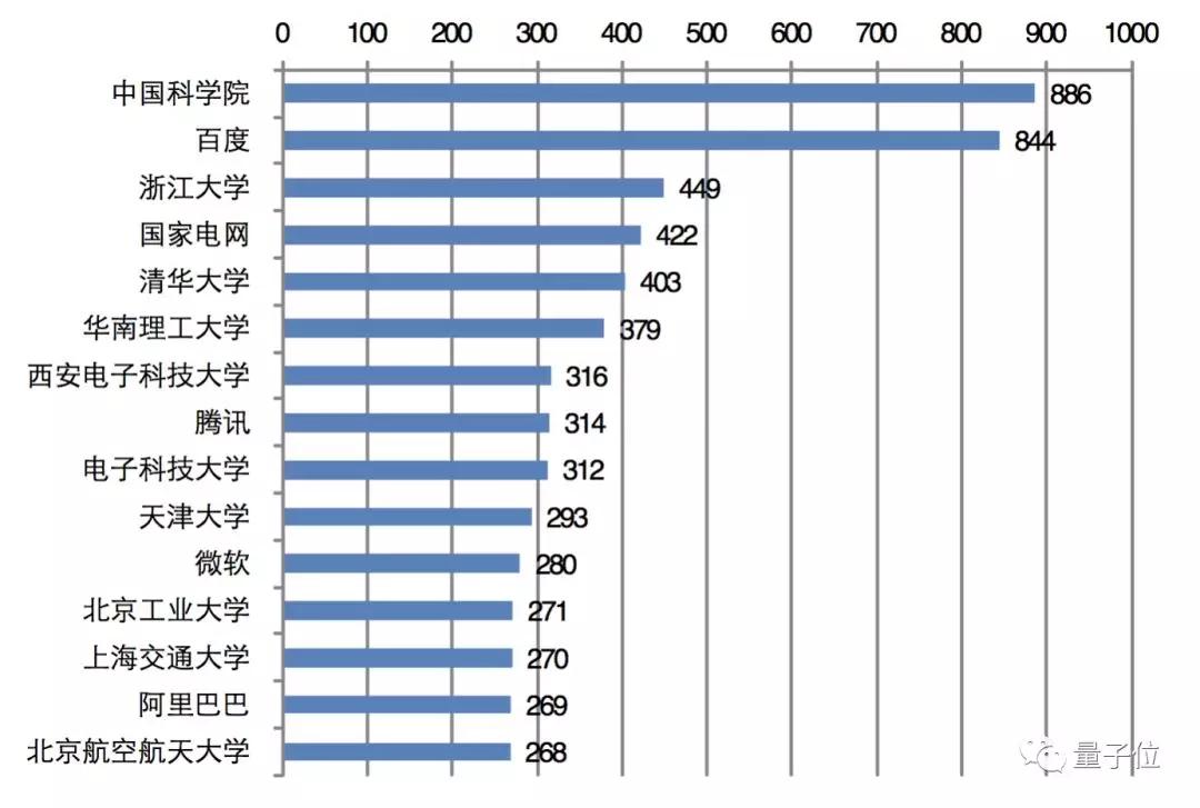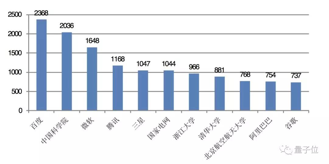 中科院、微软、腾讯和三星位居其后,前十中还有国家电网、浙大、清华、北航、阿里巴巴,以及谷歌。