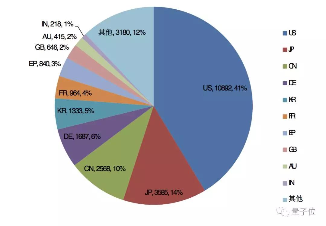 从PCT申请的数量来看,在人工智能领域,美国仍然是技术输出的领头羊,并且其申请量占到总量的41%。