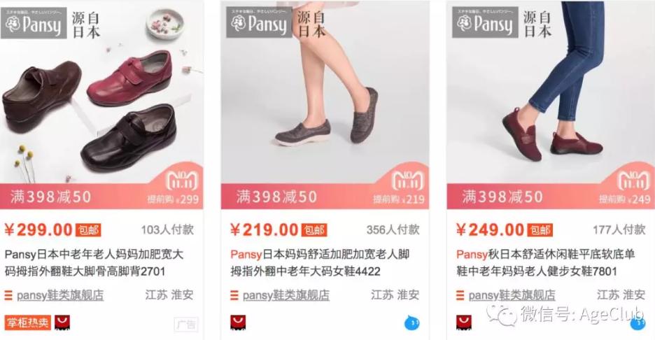 2018年,更是有波伽伦这样提供熟龄人群不同价位,衣饰打扮全方位解决方案的商家、日本的快步主义、pansy等专业老年鞋产品陆续进驻中国电商平台,市场急速扩张越来越多样化,价格梯度也在快速拉开。
