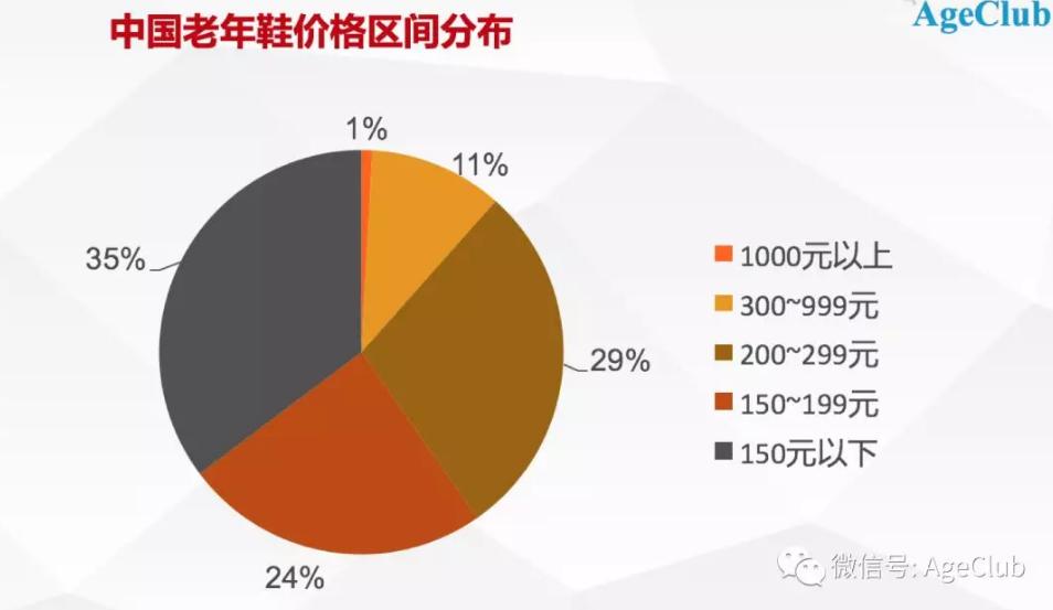 (2)价格区间:中国老年鞋占比最高的价格区间是150~299元,高性价比仍然是影响老年鞋销量的关键因素;