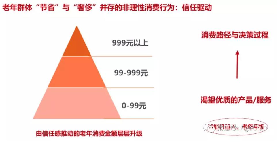 所有线上平台数据都表明,老年人群个性化多样化的新消费需求正在迅速释放出来,随着新一波拥有更高收入,更现代化生活理念的新老年群体的快速增长,整个老年消费市场呈现出非常明显的消费升级趋势。