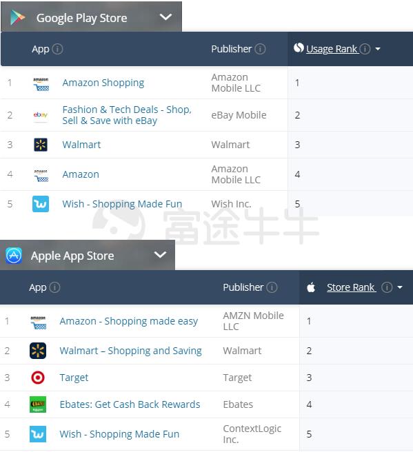 从下载量来看,Wish也确实很受欢迎,根据SimilarWeb的统计数据,购物APP中,无论是iPhone还是Android手机,Wish的下载量始终排名在前5位。