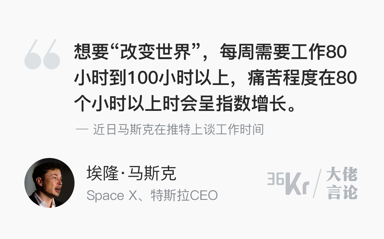 大佬言论 | 马斯克:要想改变世界,一周至少工作80小时