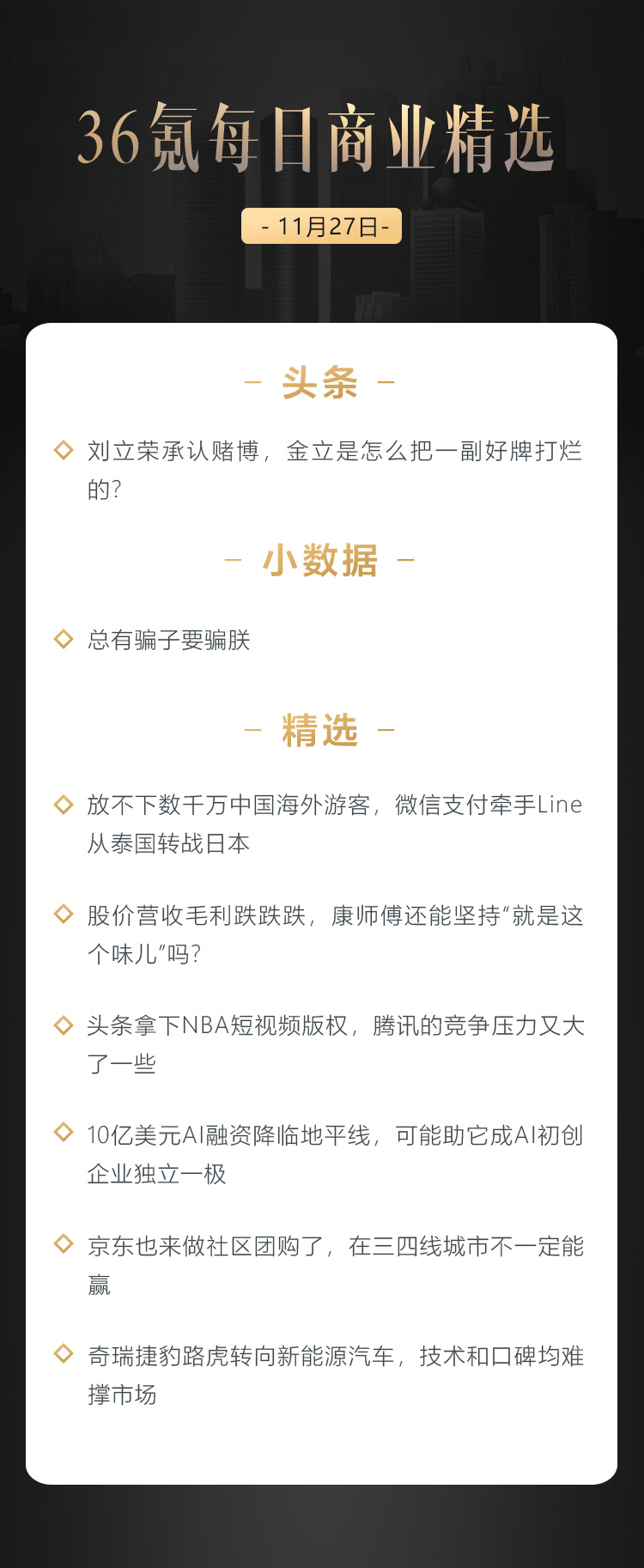 本文来自36氪付费栏目《36氪每日商业精选》——11月27日