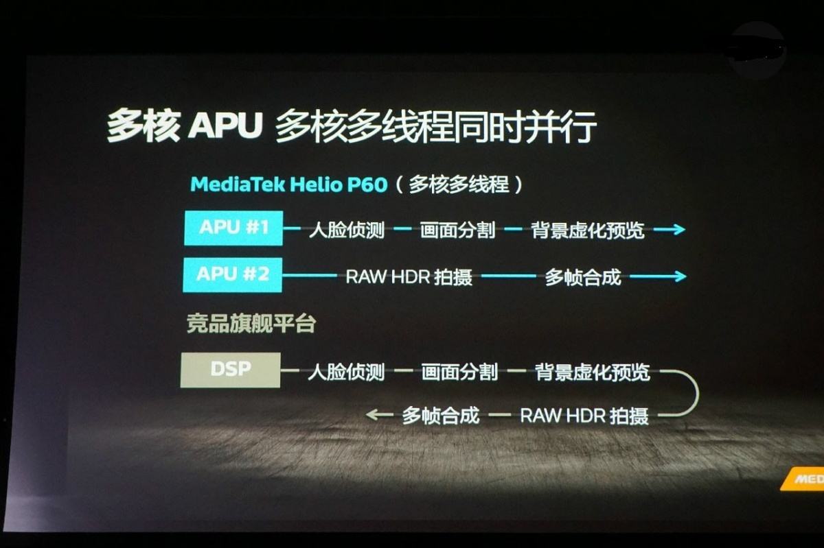 相比于华为、苹果在AI处理单元上的尝试,P60直接加入了双核APU——也就是两个独立AI处理单元。