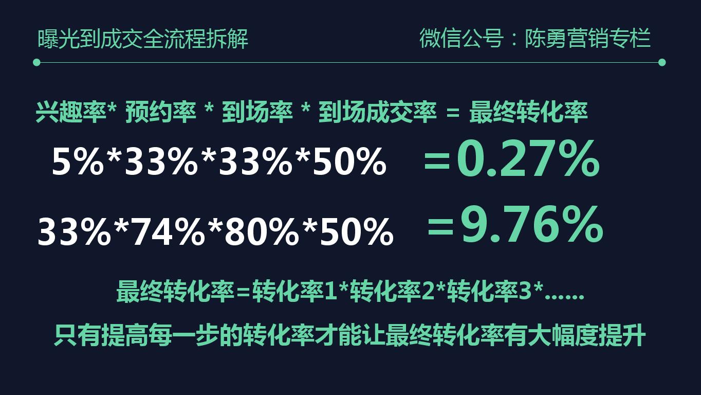 引言:“你知道怎么做才能成功,然后坚定不移的去执行每个步骤,最后的结果就是转化率的提升。合成一句话就是:只有精细化的过程控制,成功才能复制。”——“转化特种兵”陈勇