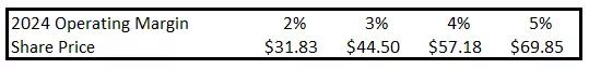 公司所处行业的竞争仍然非常激烈,所以必须有效地提高利润率,并在未来几年保持当前增速。如果公司能够做到这两点,股票目标价将有所提升,具体见下图: