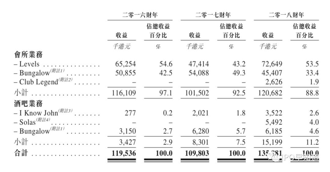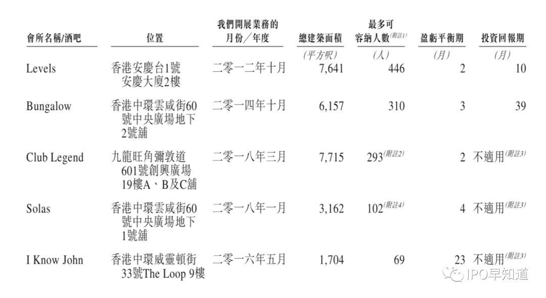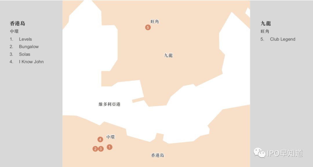 根据招股书,香港娱乐集团是一家会所及酒吧营运集团,目前拥有Levels、Bungalow及Club Legend三家会所,以及Solas、I Know John两家酒吧,除了Club Legend位于旺角黄金地段,其余四家全部坐落兰桂坊。