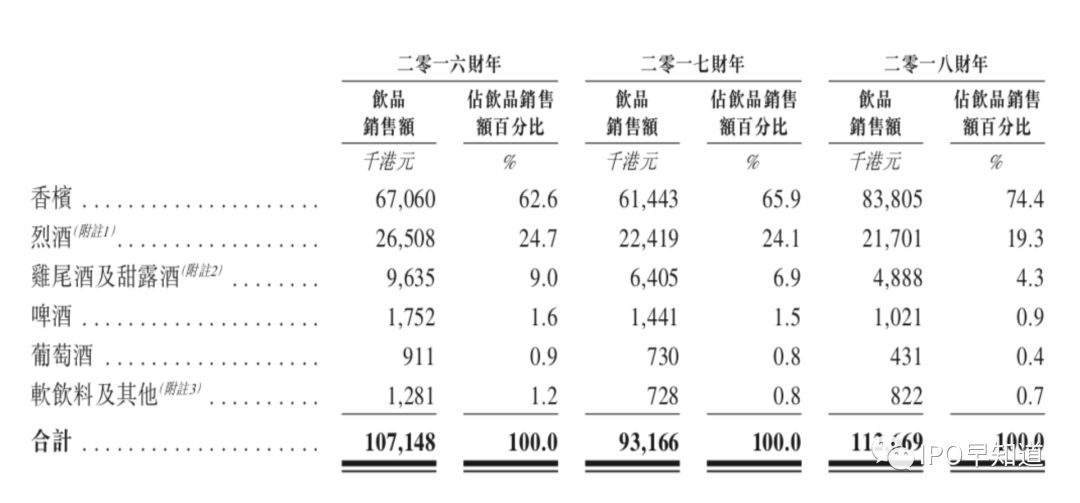 由于其高级会所的定位,销售的饮料主要是香槟、烈酒等价格较高的酒精饮料,均价在600至180000港元,其中香槟占据饮料收入的70%以上。