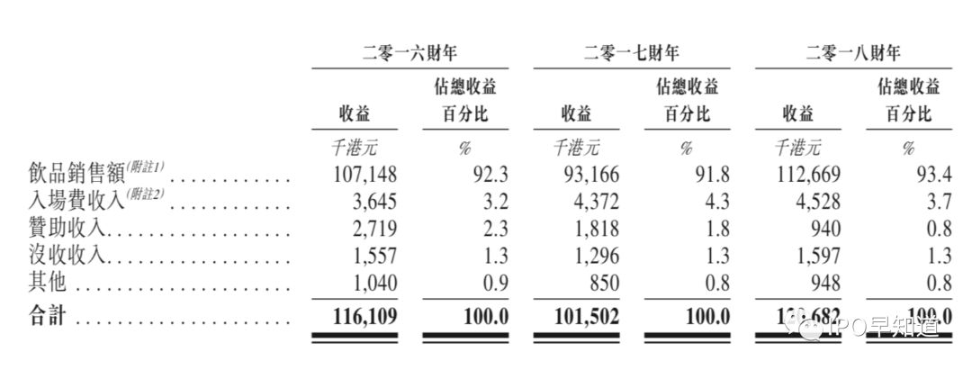 2018财年香港娱乐集团录得1.36亿港元的收益,过去三年复合增长率为6.9%。具体收入来自于销售饮料、入场费和赞助收入,而饮料销售占据了九成以上,是该公司的主要收入来源,并且主要集中产生在Levels、Bungalow两大会所。2018财年,两家会所的每单平均消费达到了2958港币和1392港币。
