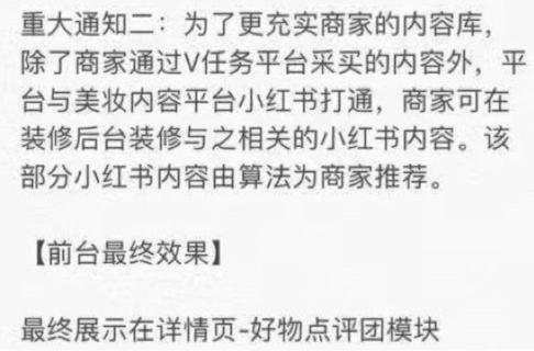 11月28日,亿邦动力网报道称手淘已于上周开启新一轮内测,商品可实现与小红书内容的打通。根据亿邦动力网所曝光的部分商家截图显示,商家可以在装修后台装修与当前商品相关的小红书内容,但没有对内容的决定权,呈现内容由算法推荐。