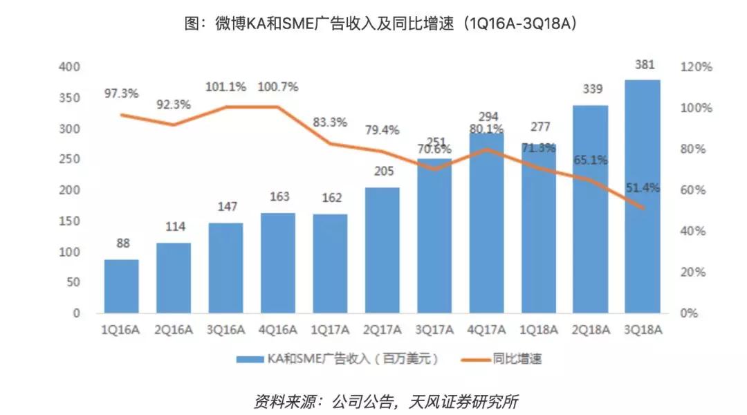 在KA上微博的钱一直赚得很舒服,对于想要提升品牌和逼格的企业来说,结合微博上的明星和一些KOL们共同打造出来的传播是效果最好的,他们的投放额度也大;而SME的钱赚起来没有那么痛快,这方面一直是微博的短板,远不如百度和头条的销售和产品体系打磨的那么好。