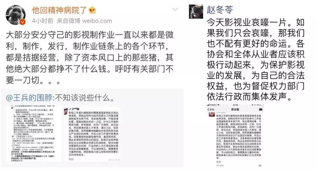 不久之后,包括导演高群书在内的知名从业者,纷纷开始在微博上呐喊,呼吁不要“一刀切”;有编剧从业者在朋友圈里大发雷霆,人大代表、编剧赵冬苓甚至表示希望此事形成议案,明年三月将其带上人大;还有文娱从业者悲观地向毒眸感慨,估计很快就会轮到自己头上:“如果真按照这个方法缴纳,很多明星都吃不消。”