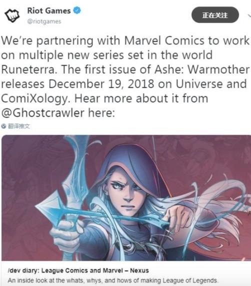 11月29日,Riot Games正式宣布漫威与《英雄联盟》第一部合作漫画《英雄联盟:艾希》,将在12月5日开启数字版本的订阅,并于12月19日在全球上线。