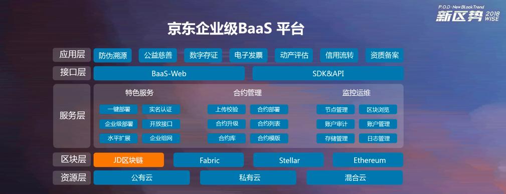 区块链作为京东的一个技术战略布局,跟我们的物联网、云计算和人工智能大数据等等是一个智能的商业体,在我们整个的业务落地中作为整体的方案进行一个完整的方案解决。