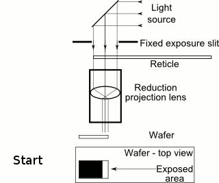 此后用特定溶剂洗去被照射/未被照射的光刻胶, 就实现了电路图从掩模到硅片的转移。